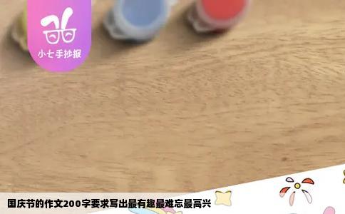 关于国庆节的作文 ”我高兴得跳起来!我们穿好救生衣,上了小游船。我当“船长”,妈妈当“游客”。“开船喽!”小船在泛着金光的湖面上自由的划行,我一边哼着。“燕子点水”呢!小船像一条条“小鱼”,“小鱼”游过的地方,留下了一圈圈波浪,在阳光的照耀下闪闪发亮。这真是个快乐又难忘的国庆节!写初中的作文国庆节...